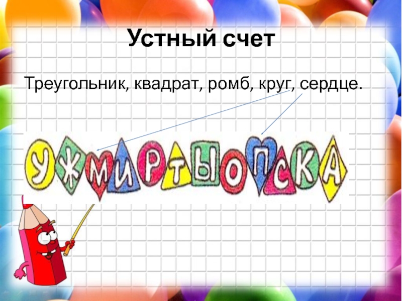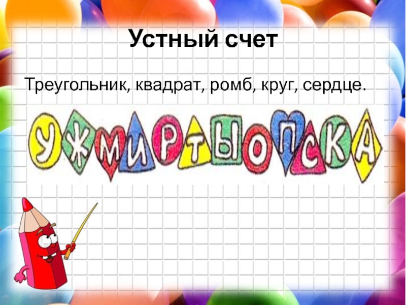 Устный счетТреугольник, квадрат, ромб, круг, сердце.
