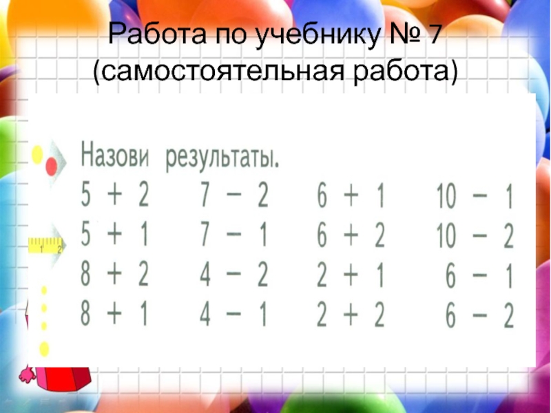 Слайд 27Работа по учебнику № 7 (самостоятельная работа)