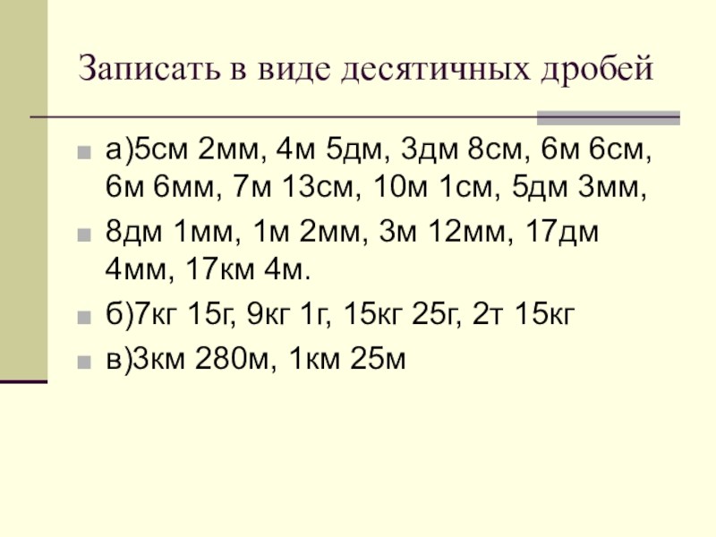 8дм 1мм, 1м 2мм, 3м 12мм, 17дм 4мм, 17км 4м.