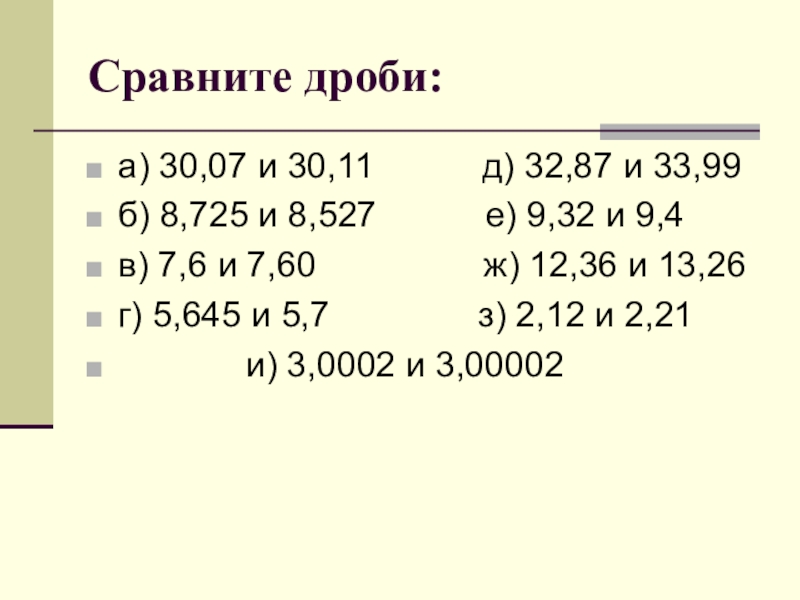 б) 8,725 и 8,527 е) 9,32 и 9,4