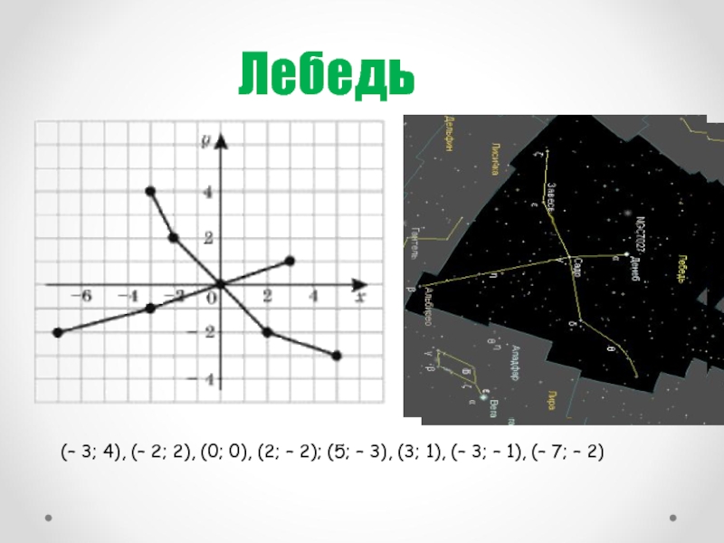 Лебедь(– 3; 4), (– 2; 2), (0; 0), (2; – 2); (5; – 3), (3; 1), (– 3; – 1), (– 7; – 2)