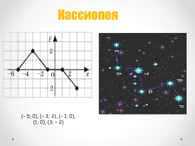 Кассиопея(– 5; 0), (– 3; 2), (– 1; 0),(1; 0), (3; – 2)