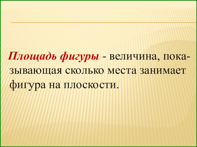 Площадь фигуры - величина, пока-зывающая сколько места занимает фигура на