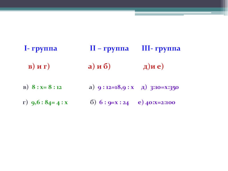 в) 8 : х= 8 : 12 а) 9 : 12=18,9 : х д) 3:10=х:350