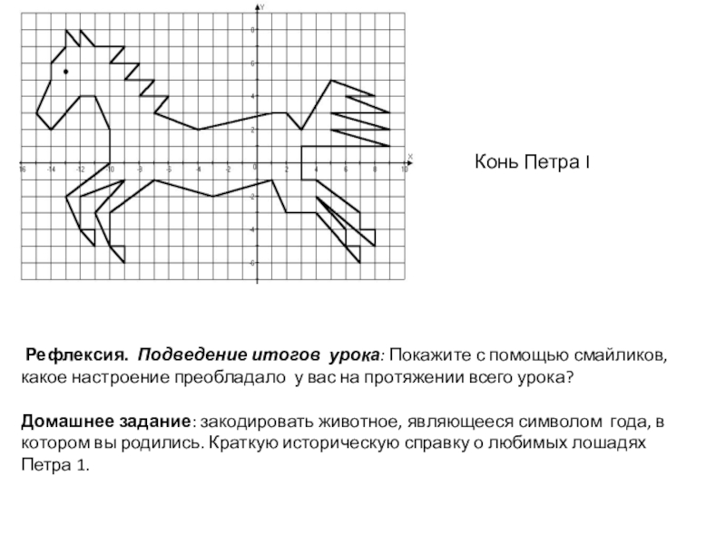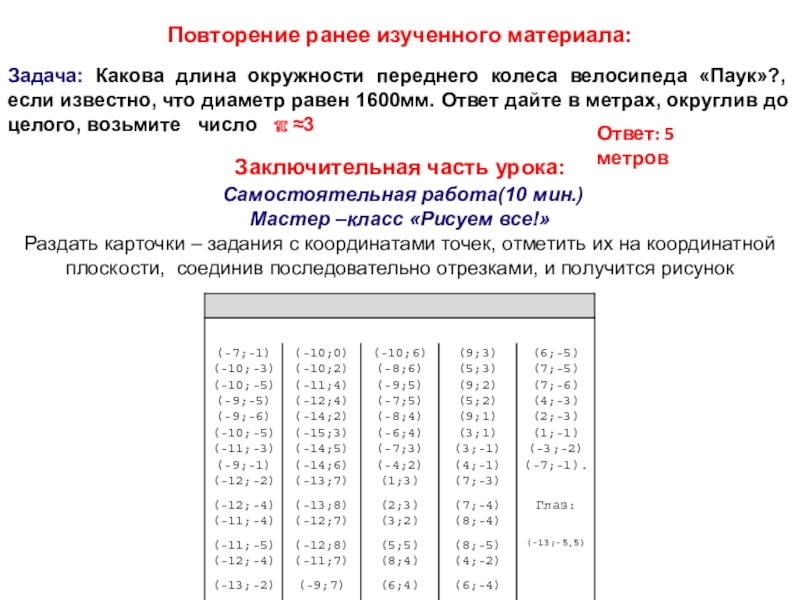 Раздать карточки – задания с координатами точек, отметить их на координатной плоскости, соединив последовательно отрезками, и получится рисунок