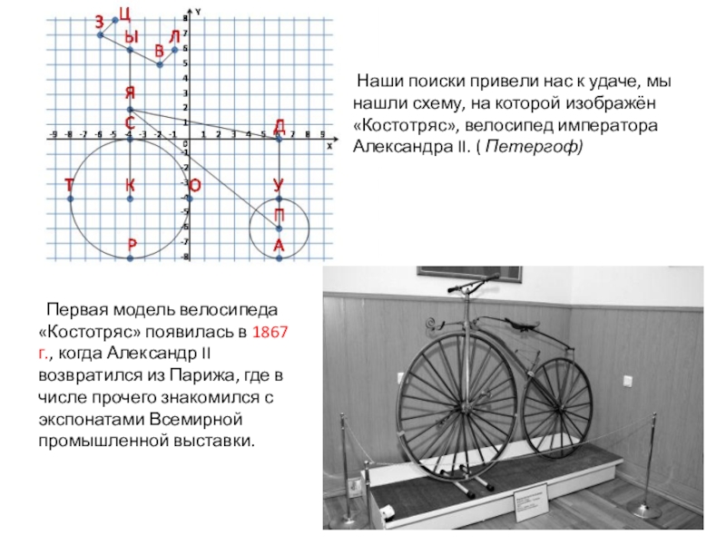 Первая модель велосипеда «Костотряс» появилась в 1867 г., когда Александр II возвратился из Парижа, где в числе прочего знакомился с экспонатами Всемирной промышленной выставки.