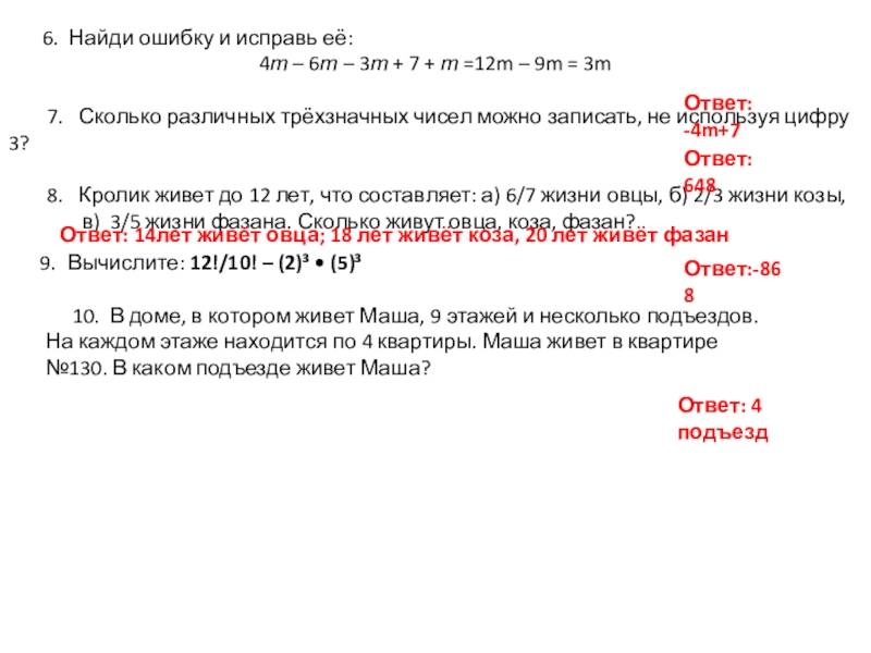 10. В доме, в котором живет Маша, 9 этажей и несколько подъездов. На каждом этаже находится по 4 квартиры. Маша живет в квартире №130. В каком подъезде живет Маша?