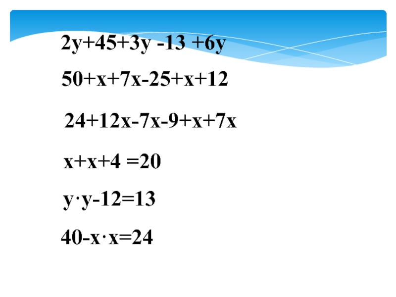 2у+45+3у -13 +6у50+х+7х-25+х+1224+12х-7х-9+х+7хх+х+4 =20у·у-12=1340-х·х=24