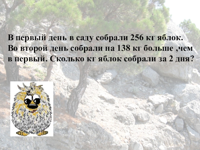 Слайд 9В первый день в саду собрали 256 кг яблок.