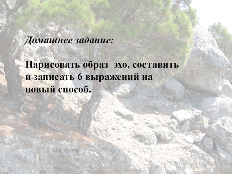 Домашнее задание:Нарисовать образ эхо, составить и записать 6 выражений на новый способ.