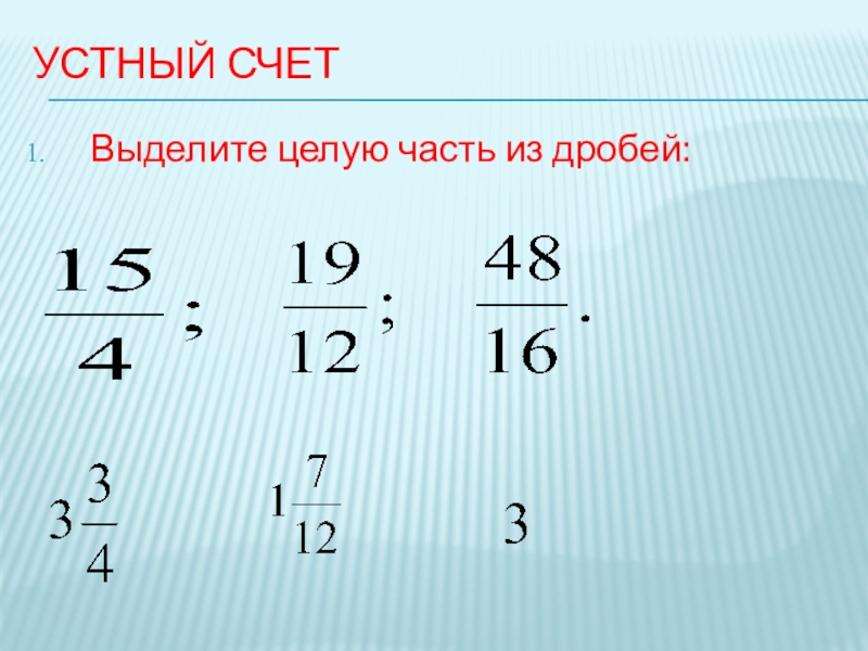 Устный счетВыделите целую часть из дробей: