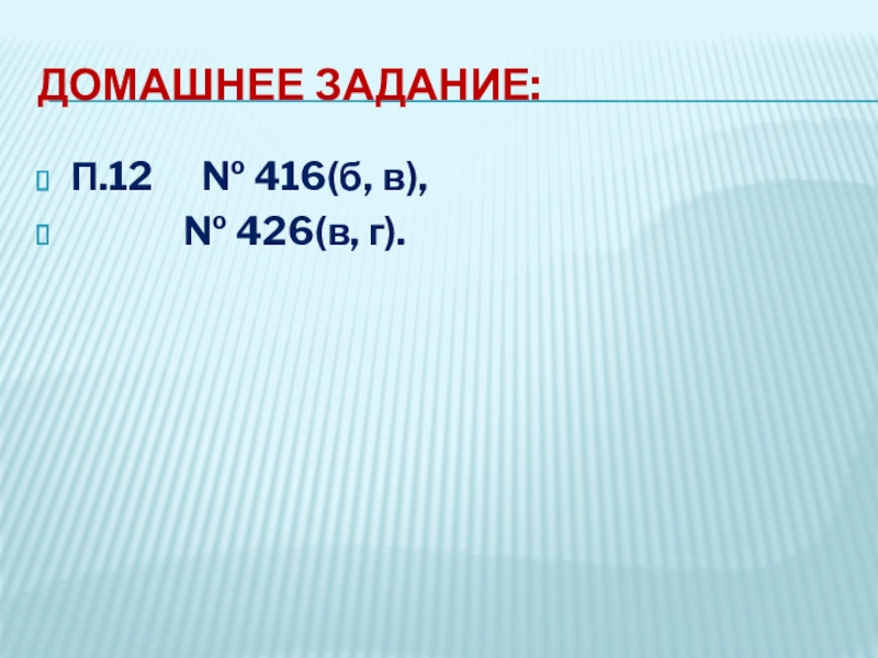 Домашнее задание:П.12   № 416(б, в),        № 426(в, г).
