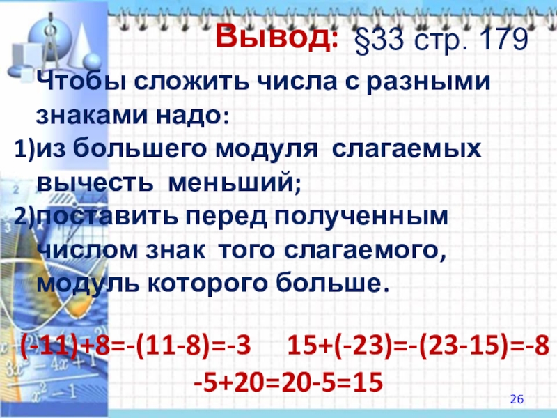 (-11)+8=-(11-8)=-3 15+(-23)=-(23-15)=-8