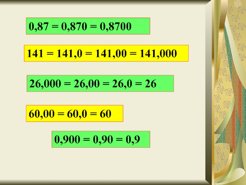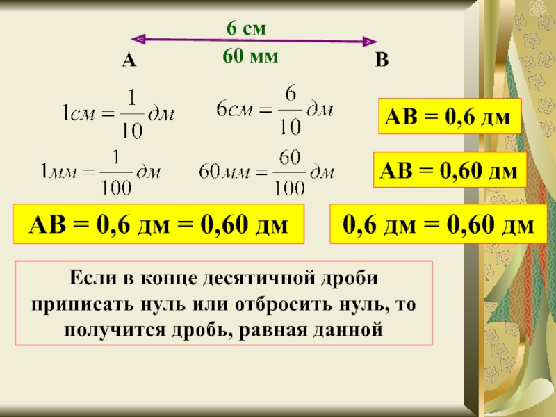 РАВНЫЕ ДЕСЯТИЧНЫЕ ДРОБИ изображаются на координатном луче ОДНОЙ И ТОЙ ЖЕ ТОЧКОЙ