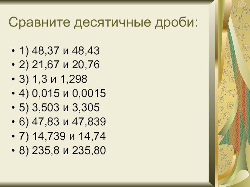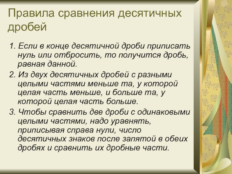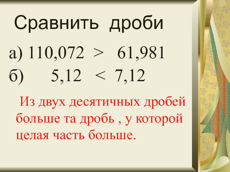 Меньшая десятичная дробь лежит на координатном луче левее большей, и большая – правее меньшей