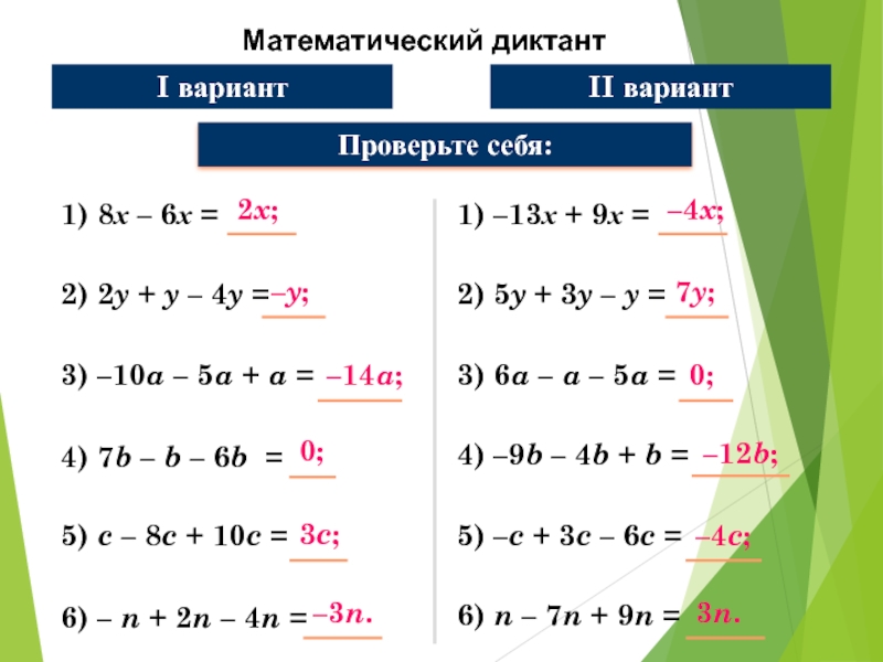 6) – n + 2n – 4n =