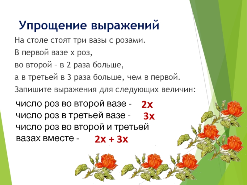 число роз во второй и третьей вазах вместе -