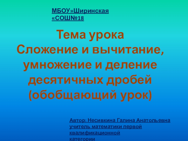 МБОУ»Ширинская «СОШ№18
