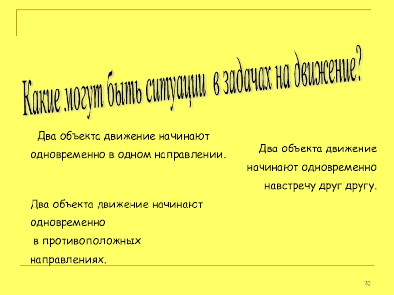 Какие могут быть ситуации в задачах на движение?