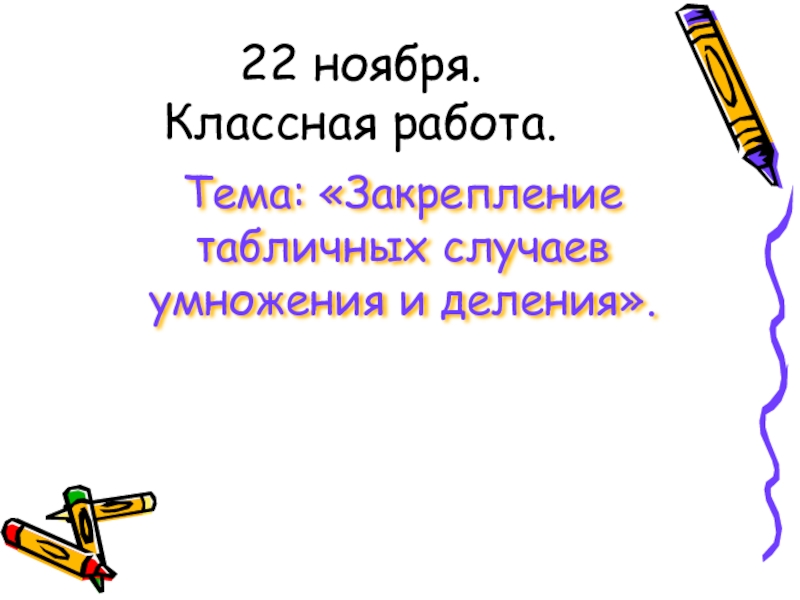 Тема: «Закрепление табличных случаев умножения и деления».22 ноября. Классная работа.