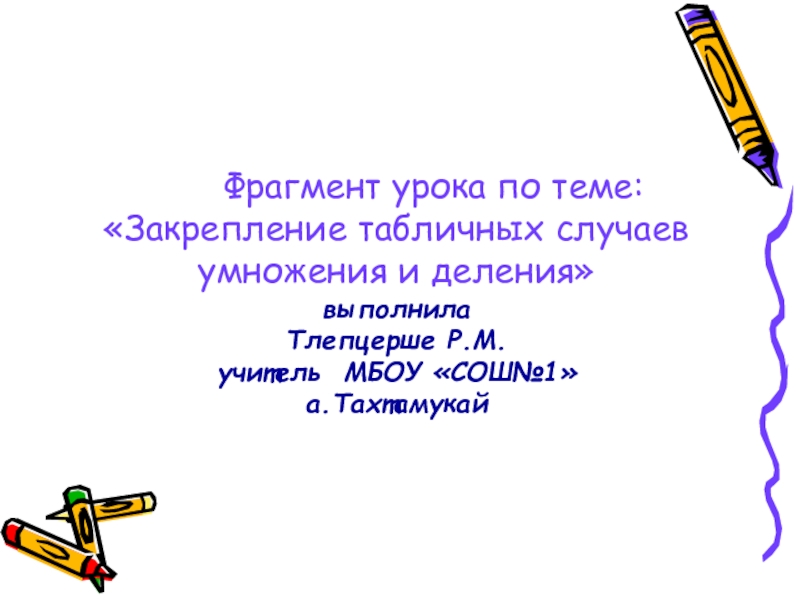 Фрагмент урока по теме: «Закрепление табличных случаев умножения и деления»выполнила Тлепцерше Р.М. учитель