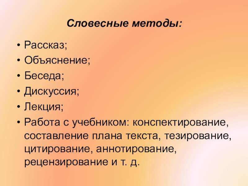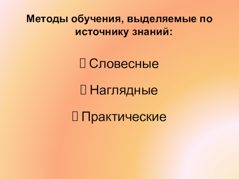 Слайд 7Методы обучения, выделяемые по источнику знаний: