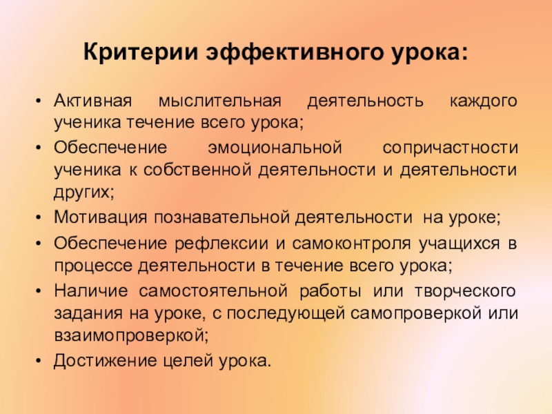 Активная мыслительная деятельность каждого ученика течение всего урока;