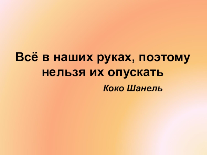 Слайд 30Всё в наших руках, поэтому нельзя их опускать