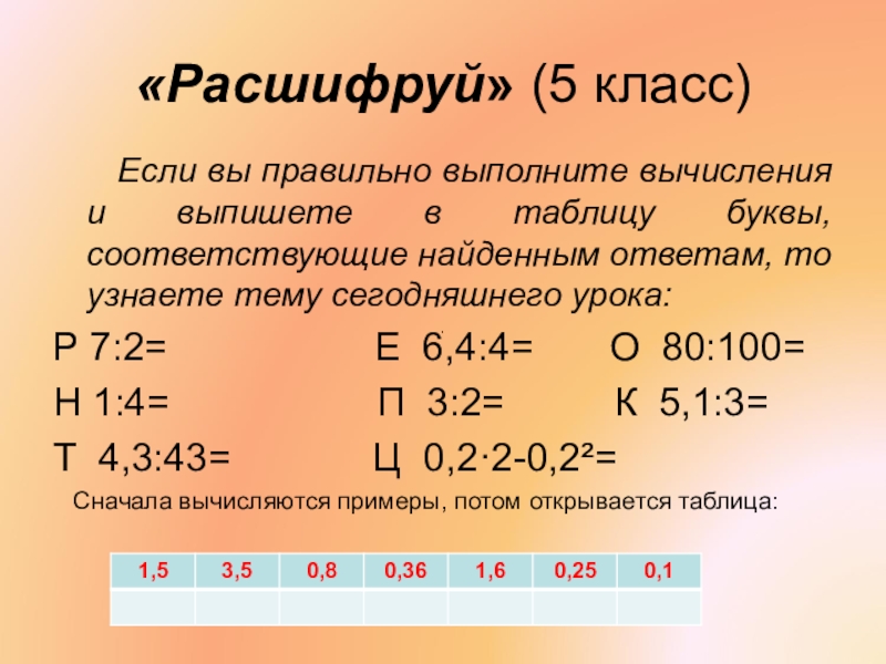 выпишете в таблицу буквы, соответствующие найденным ответам, то узнаете тему сегодняшнего урока: