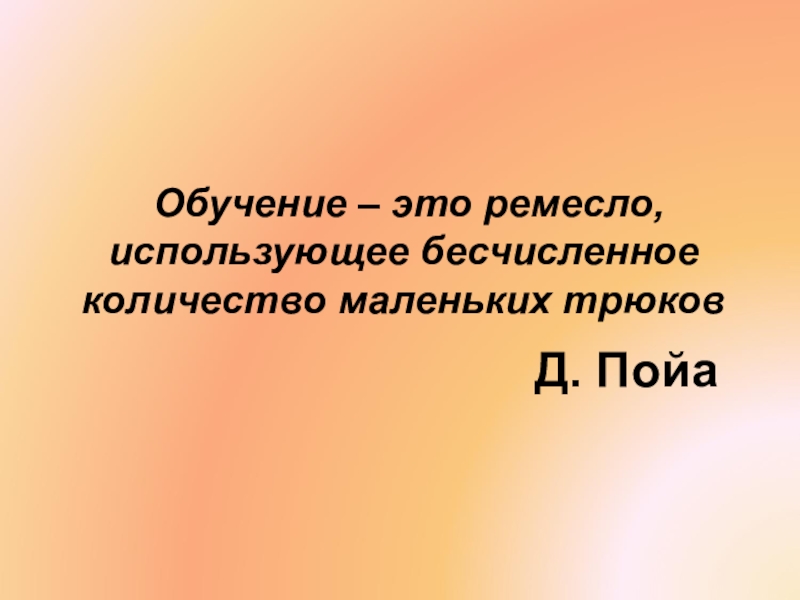 Слайд 13 Обучение – это ремесло, использующее бесчисленное количество маленьких трюков
