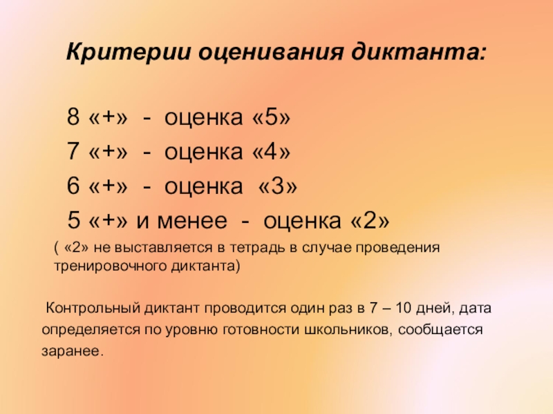 ( «2» не выставляется в тетрадь в случае проведения тренировочного диктанта)