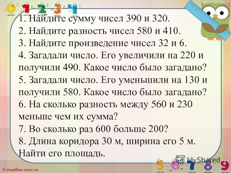 5. Загадали число. Его уменьшили на 130 и получили 580. Какое число было загадано?