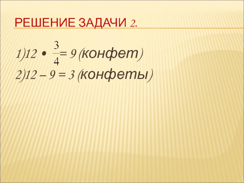 РЕШЕНИЕ ЗАДАЧИ 2.1)12 •  = 9 (конфет)2)12 – 9 = 3 (конфеты)