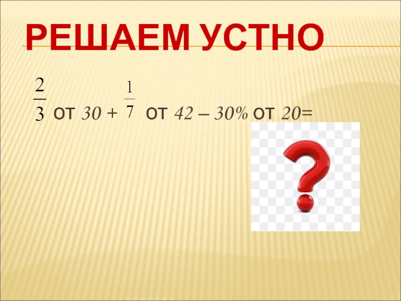 РЕШАЕМ УСТНО   от 30 +   от 42 – 30% от 20=
