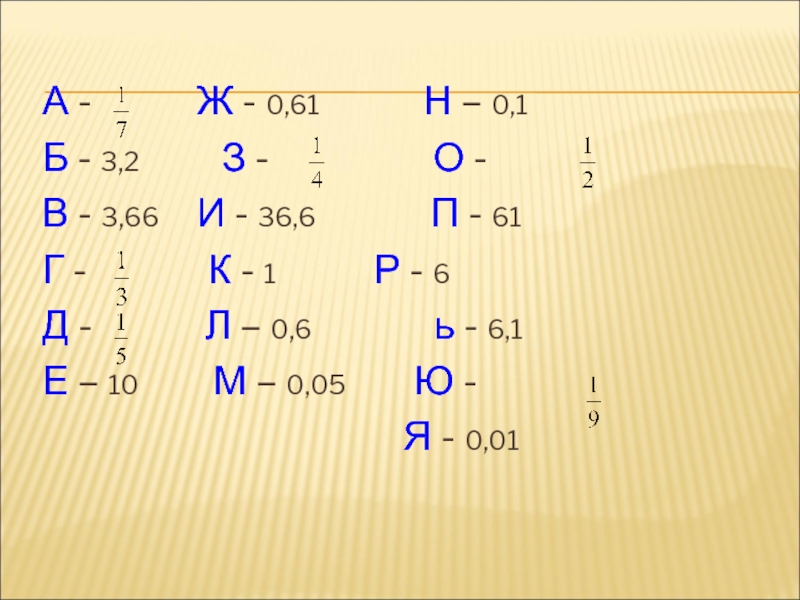 А - 		  Ж - 0,61      Н – 0,1 	Б -