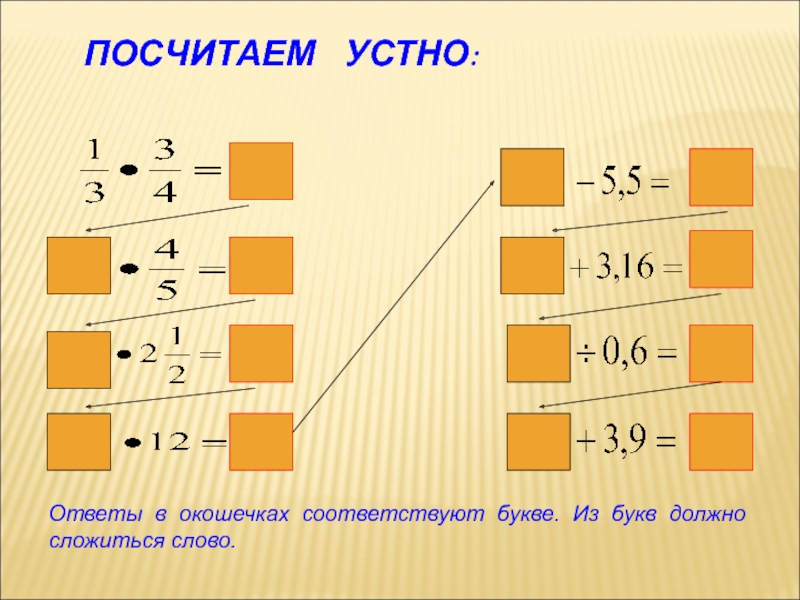 ПОСЧИТАЕМ УСТНО: Ответы в окошечках соответствуют букве. Из букв должно сложиться слово.