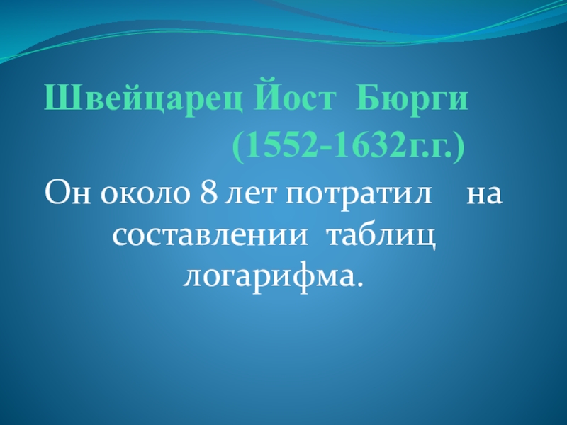 Он около 8 лет потратил на составлении таблиц логарифма.