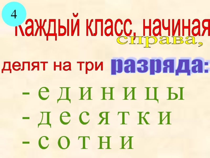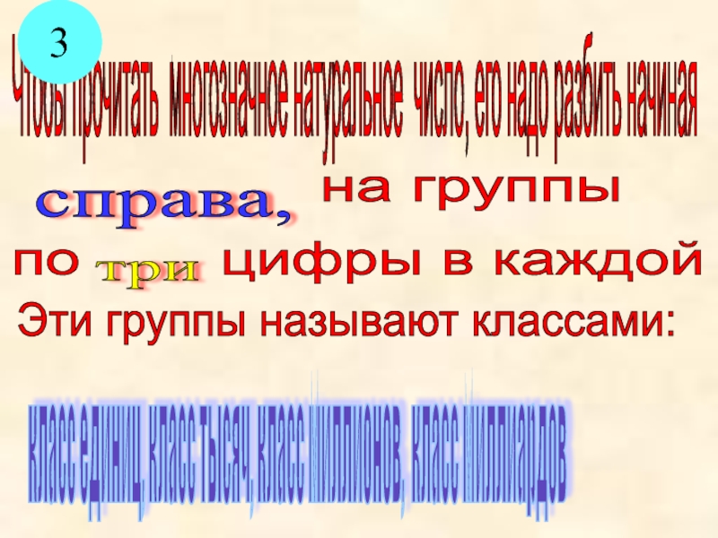 класс единиц, класс тысяч, класс миллионов, класс миллиардов