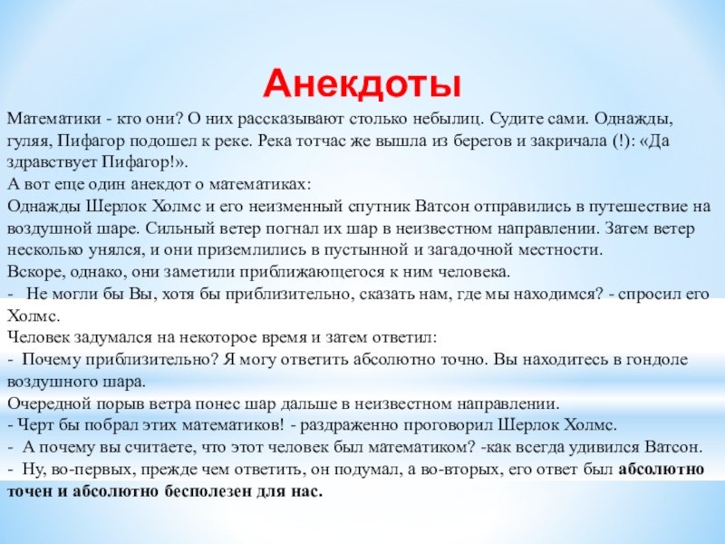 - А почему вы считаете, что этот человек был математиком? -как всегда удивился Ватсон.