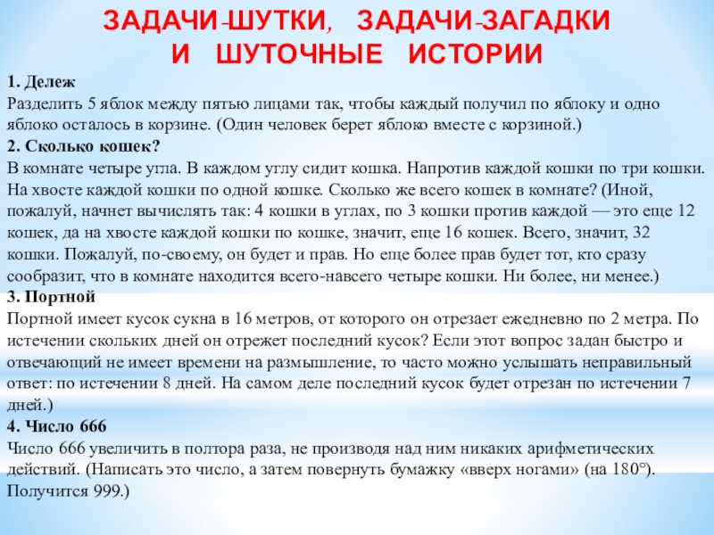 Слайд 21ЗАДАЧИ-ШУТКИ, ЗАДАЧИ-ЗАГАДКИ