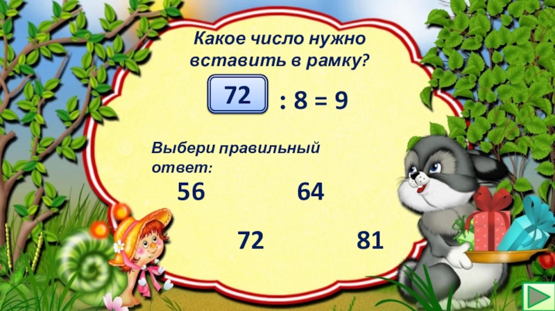 Презентация, доклад по математике НЕИЗВЕСТНЫЙ КОМПОНЕНТ ДЕЛЕНИЯ. Интерактивный тренажёр