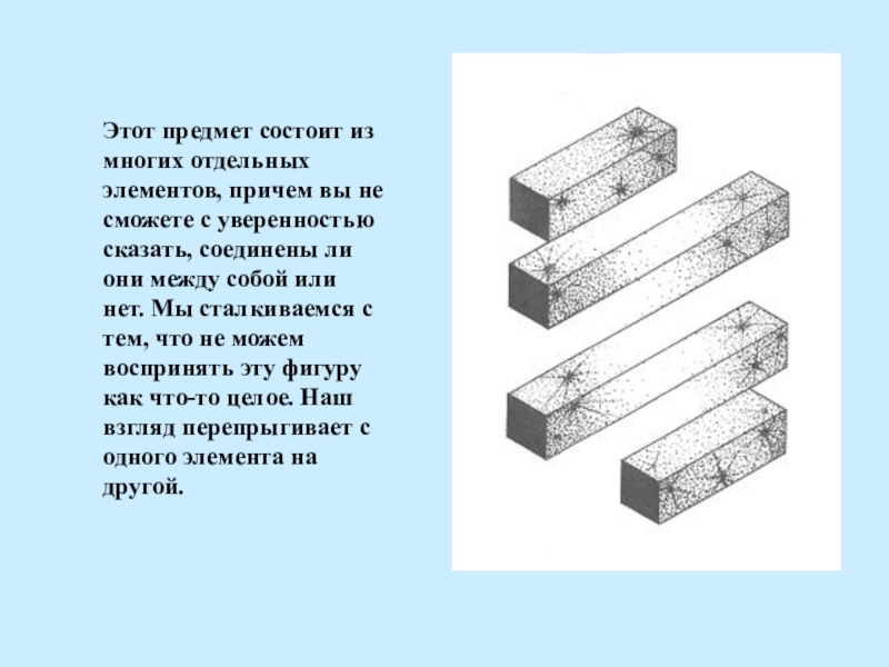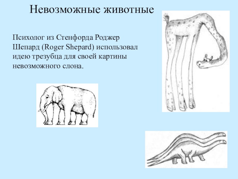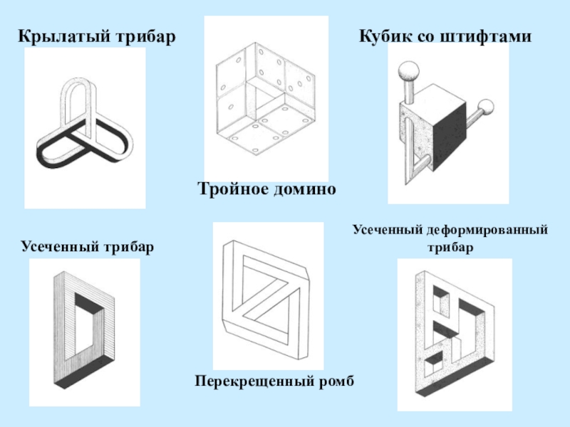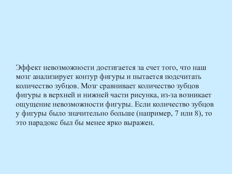 Таким образом, можно увидеть, что передний и задний планы данного рисунка конфликтуют. То есть, то что было изначально на переднем плане уходит назад, а задний план (средний зуб) вылезает вперед. Кроме смены переднего и заднего планов в данном рисунке присутствует еще один эффект – плоские грани верхней части трезубца становятся круглыми в нижней.