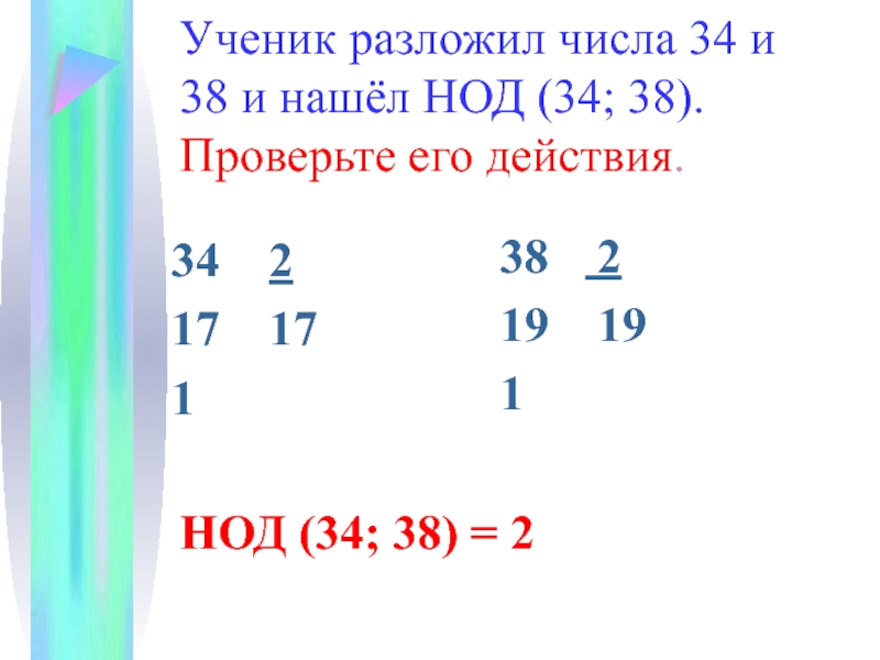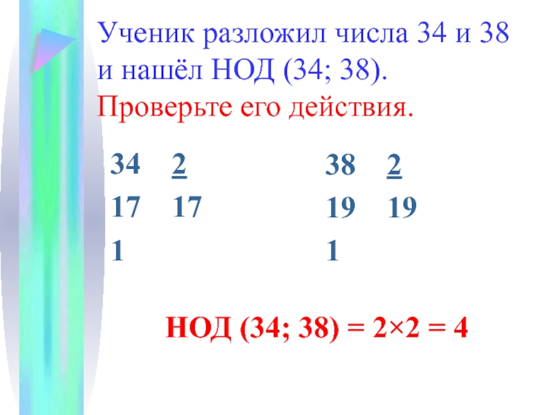 НОД (34; 38) = 2×2 = 4