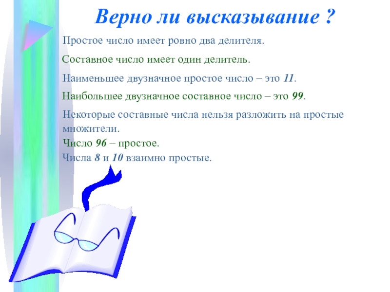 Простое число имеет ровно два делителя.