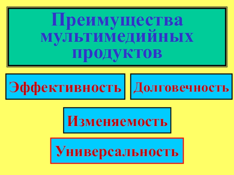 Преимущества мультимедийных продуктовЭффективностьДолговечностьИзменяемостьУниверсальность