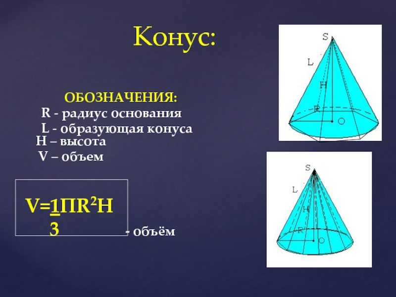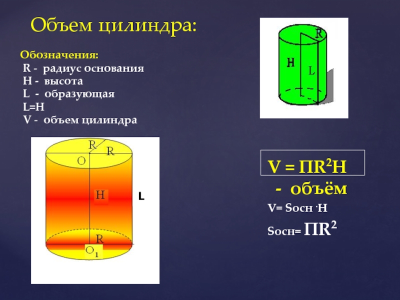 V = ПR2H - объём