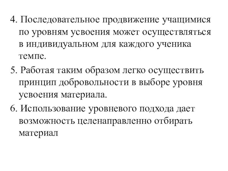 6. Использование уровневого подхода дает возможность целенаправленно отбирать материал