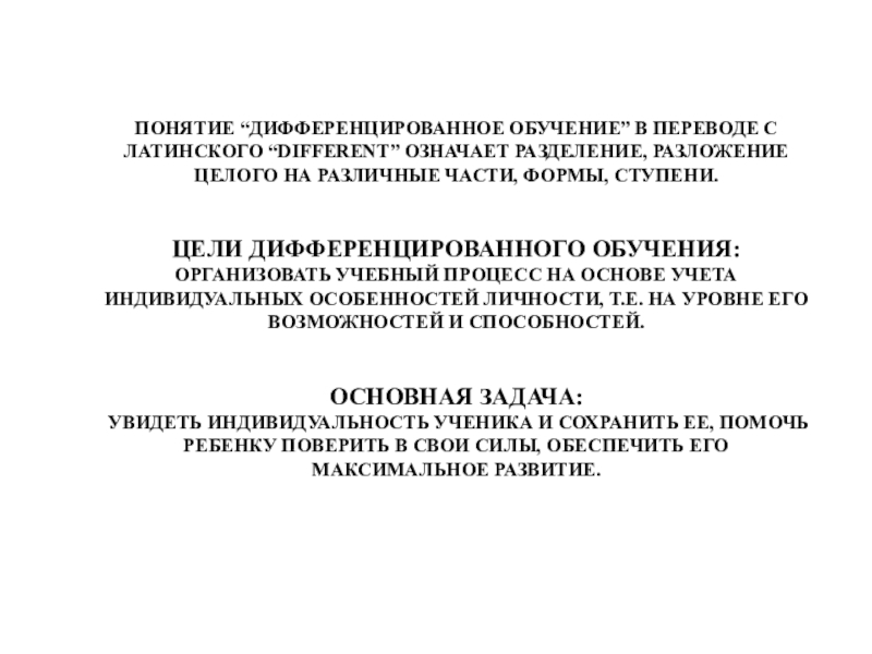 Понятие “дифференцированное обучение” в переводе с латинского “different” означает разделение, разложение