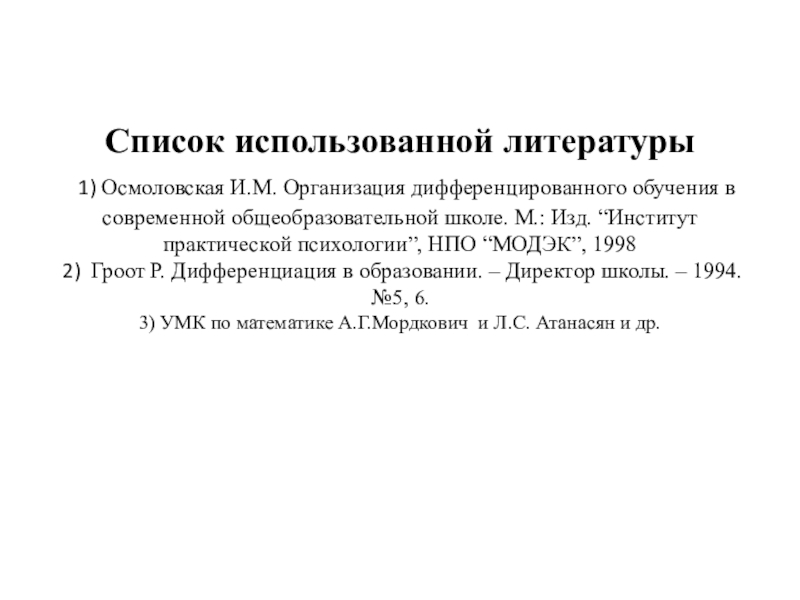 1) Осмоловская И.М. Организация дифференцированного обучения в современной
