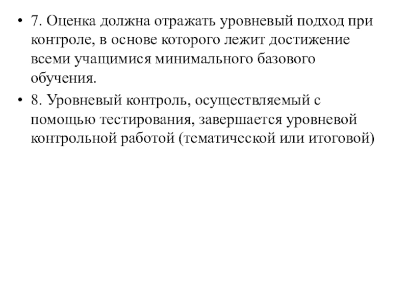 Слайд 157. Оценка должна отражать уровневый подход при контроле, в основе которого